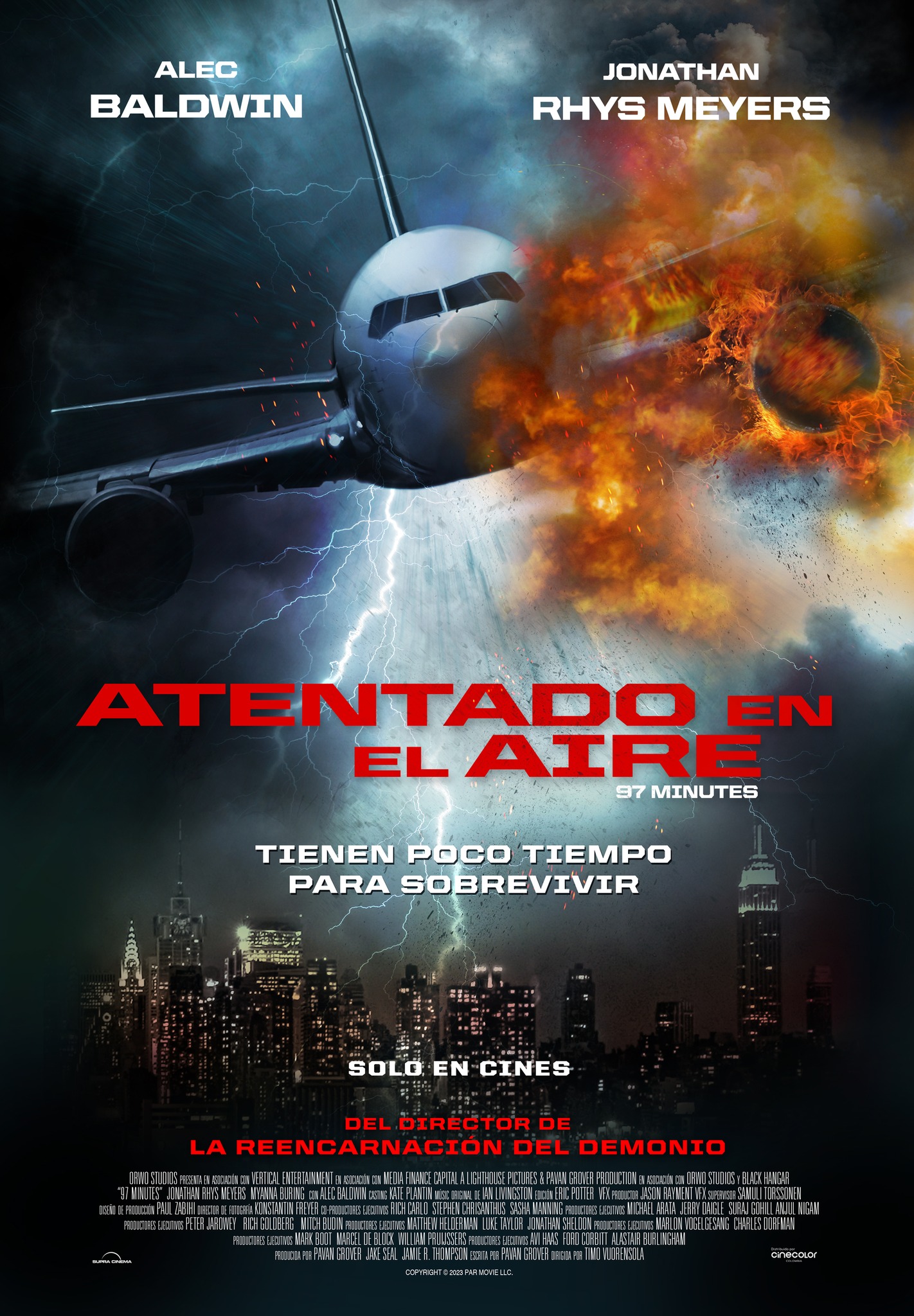 Atentado en el Aire, o 97 Minutes, es dirigida por: Timo Vuorensola; producida por: Black Hangar Studios, Lighthouse Pictures Media, Finance Capital; y contó con la participación de: Jonathan Rhys Meyers, Alec Baldwin y MyAnna Buring.