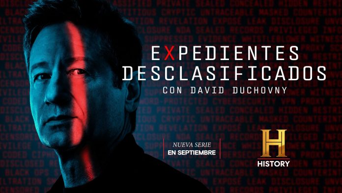 HISTORY estrena el viernes 19 de septiembre “EXPEDIENTES DESCLASIFICADOS CON DAVID DUCHOVNY”, la serie documental conducida y producida por el actor ganador de dos Globos de Oro David Duchovny (The X-Files, Californication) que brinda un acceso a la evidencia más reciente detrás de algunas de las operaciones gubernamentales más secretas, insólitas y sorprendentes de la historia.