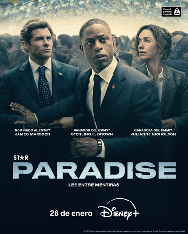 Disney+ presentó hoy un nuevo impactante tráiler de Paradise, la serie dramática original protagonizada por Sterling K. Brown, James Marsden y Julianne Nicholson. Creada por Dan Fogelman, estrena el próximo martes 28 de enero con tres episodios y luego estrena un episodio cada martes.