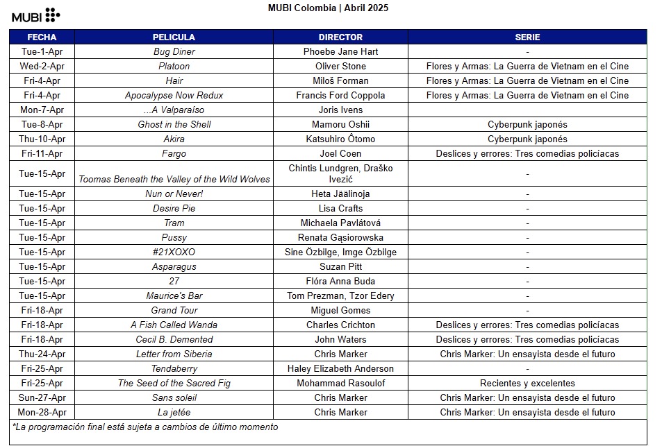 MUBI, el servicio global de streaming con curaduría, presenta los estrenos seleccionados para el mes de abril de 2025.