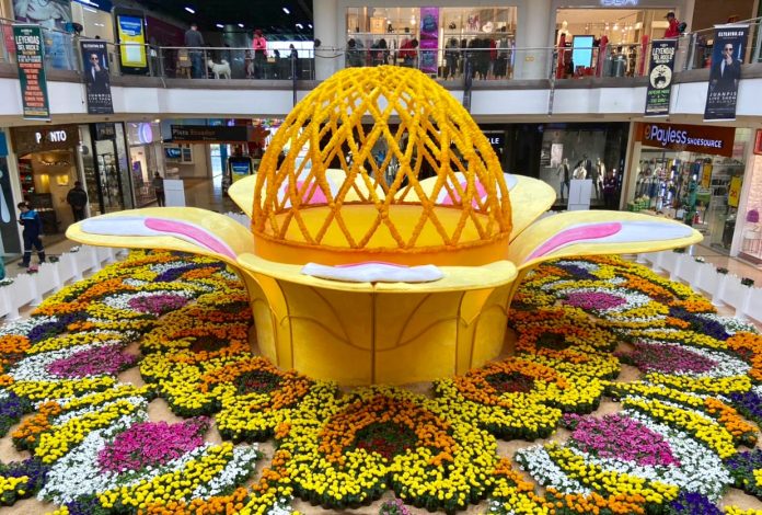 El Centro Comercial Santafé se viste de petunias rojas, marigold naranjas, marigold amarillas, petunias rosadas, petunias moradas, petunias azules y petunias blancas para un total de 50.000 flores traídas directamente desde Santa Elena de Antioquia que adornan la Plaza Ecuador del primer piso, en su maravilloso Jardín del Encanto en su tercera edición, un espacio para respiro a nuestras vidas y salirnos de la monotonía.