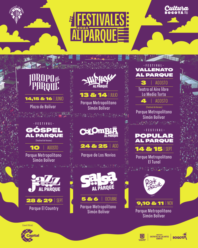 Además, de los festivales que ya existían desde ediciones pasadas, esta vez se suman dos nuevos eventos musicales: ‘Popular al Parque’ y ‘Vallenato al Parque’.