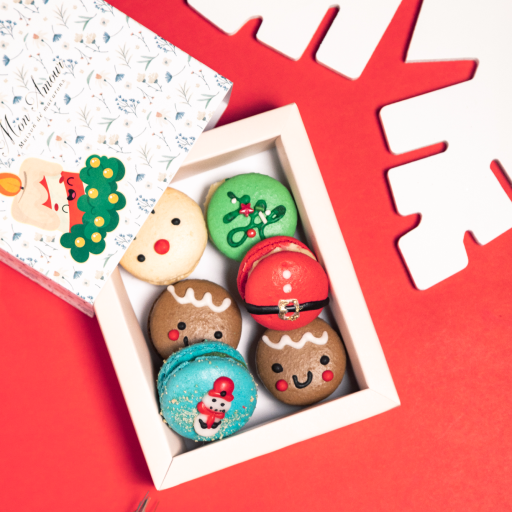 Si quieres regalar algo especial a los anfitriones de las novenas, llévales macarons de Mon Amour. Tienen diseños de snowman, copos de navidad, Rudolph, corona y hasta árbol navideño. Pídelos en sabores de banano, oreo, mantequilla y maní, entre otros.