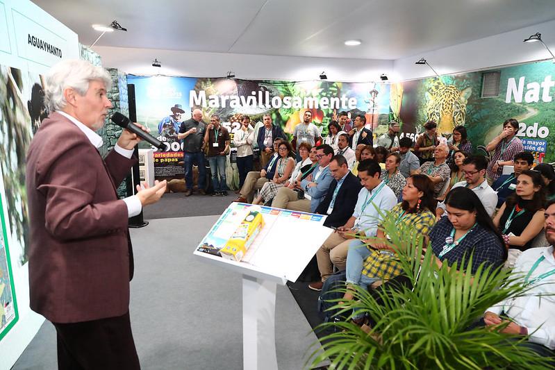 Alberto Suárez, gerente de Amarumayu, abrió el panel resaltando el compromiso de Grupo AJE con la conservación de la biodiversidad. «No se puede conservar si no hay alianza entre todos los sectores», señaló Suárez, quien destacó cómo la empresa, nacida en Ayacucho, ha evolucionado hacia un modelo de negocio sostenible que involucra a comunidades amazónicas. Este enfoque, según Suárez, permite mantener más de cuatro millones de hectáreas de bosque, generando ingresos para más de 400 familias y 25 comunidades amazónicas.
