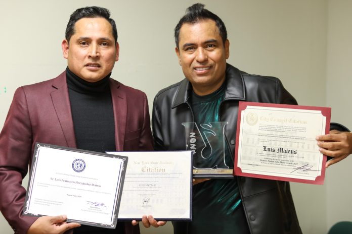 En un acto emocionante, Mateus también recibió un reconocimiento por parte de la Asamblea de Nueva York, así como un reconocimiento por parte de la ONU y del Congreso de Estados Unidos del Estado de New York.
