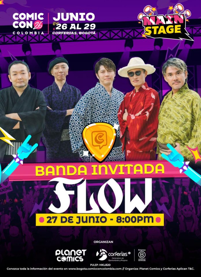 Por primera vez, la icónica banda japonesa FLOW visitará Colombia, consolidando su conexión con el público latinoamericano tras exitosas presentaciones en países como: México, Brasil, Argentina, Chile, Perú y Ecuador. Considerados la «realeza de los Anisongs«, son reconocidos por éxitos mundiales como «GO!!!» y «Sign» de la franquicia Naruto; aperturas legendarias para series de culto como «Colors» (Code Geass), «Days» (Eureka Seven) y «Howling» (The Seven Deadly Sins); además de haber sido elegidos para reinterpretar el himno máximo del anime, «Cha-La Head-Cha-La«, para la película Dragon Ball Z: La Batalla de los Dioses, conectando así con fans de todas las edades.