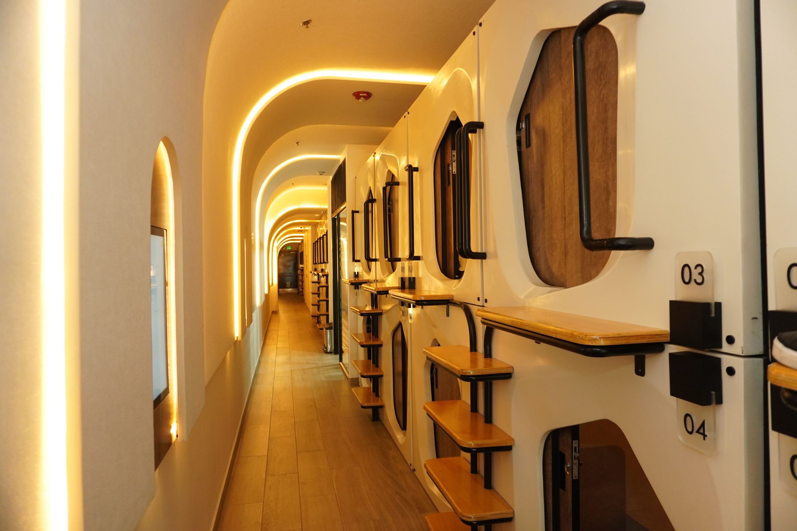 Cada pod cuenta con Wi-Fi de alta velocidad, estaciones de carga, aislamiento acústico y almacenamiento de equipaje seguro, con acceso rápido mediante un sistema de check-in digital automatizado. Inspirado en la estética Japandi, su diseño interior ofrece un ambiente minimalista, elegante y acogedor, ideal para el descanso.