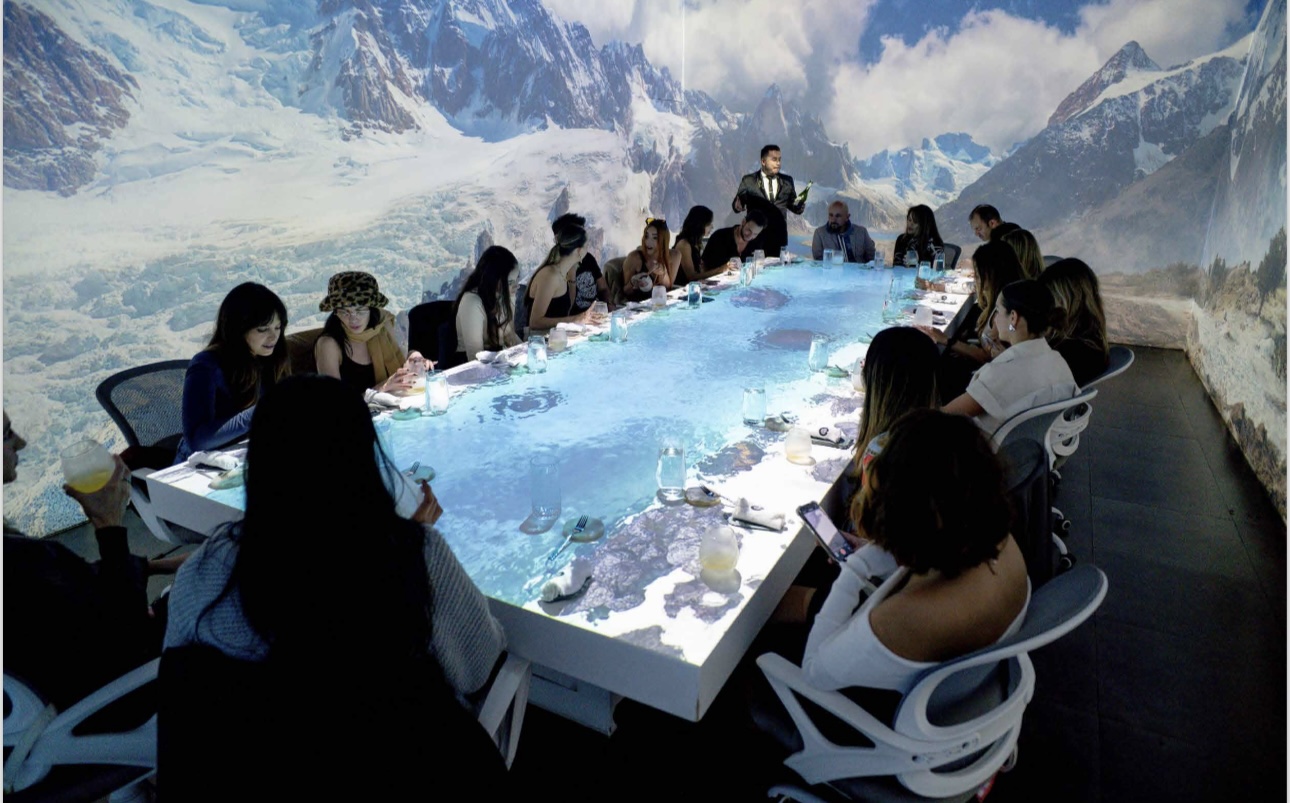 👉🏻 Esta experiencia lleva a los comensales en un viaje por 10 mundos creados con tecnología, mientras disfrutan de un menú degustación de 10 pasos.