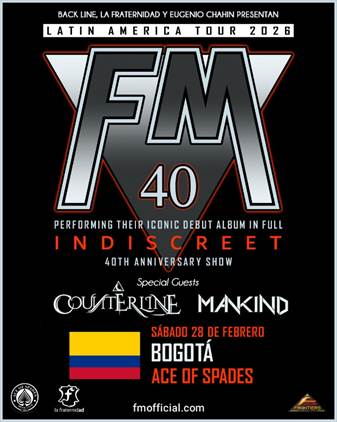 El próximo 28 de febrero, Bogotá será escenario de una noche que promete quedar grabada en la memoria del rock melódico. En Ace of Spades, la legendaria banda británica FM celebrará los 40 años de Indiscreet, el álbum que los convirtió en referentes mundiales del AOR, y lo hará con un invitado de lujo: Counterline, la agrupación colombiana que hoy lidera el género en el país.