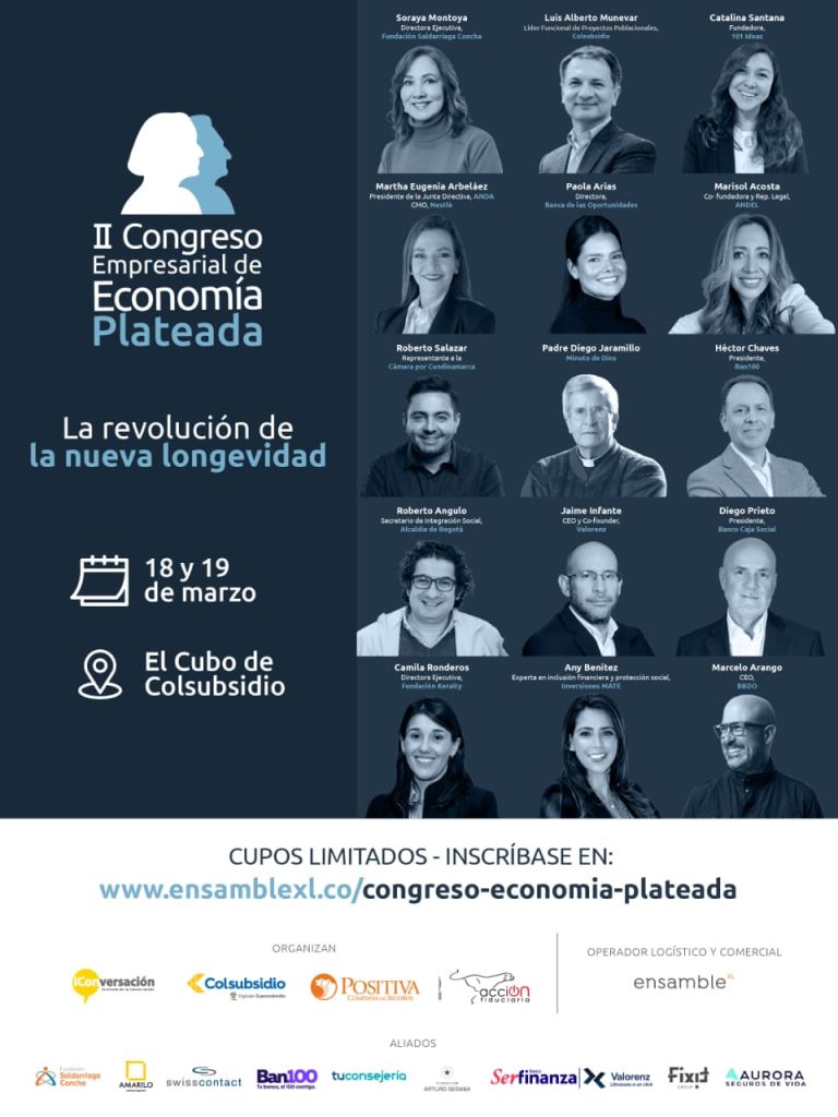 👉🏼 El II Congreso Empresarial de Economía Plateada, que tendrá lugar de manera gratuita el 18 y 19 de marzo en el Cubo de Colsubsidio, busca convertir esa realidad en estrategia empresarial.