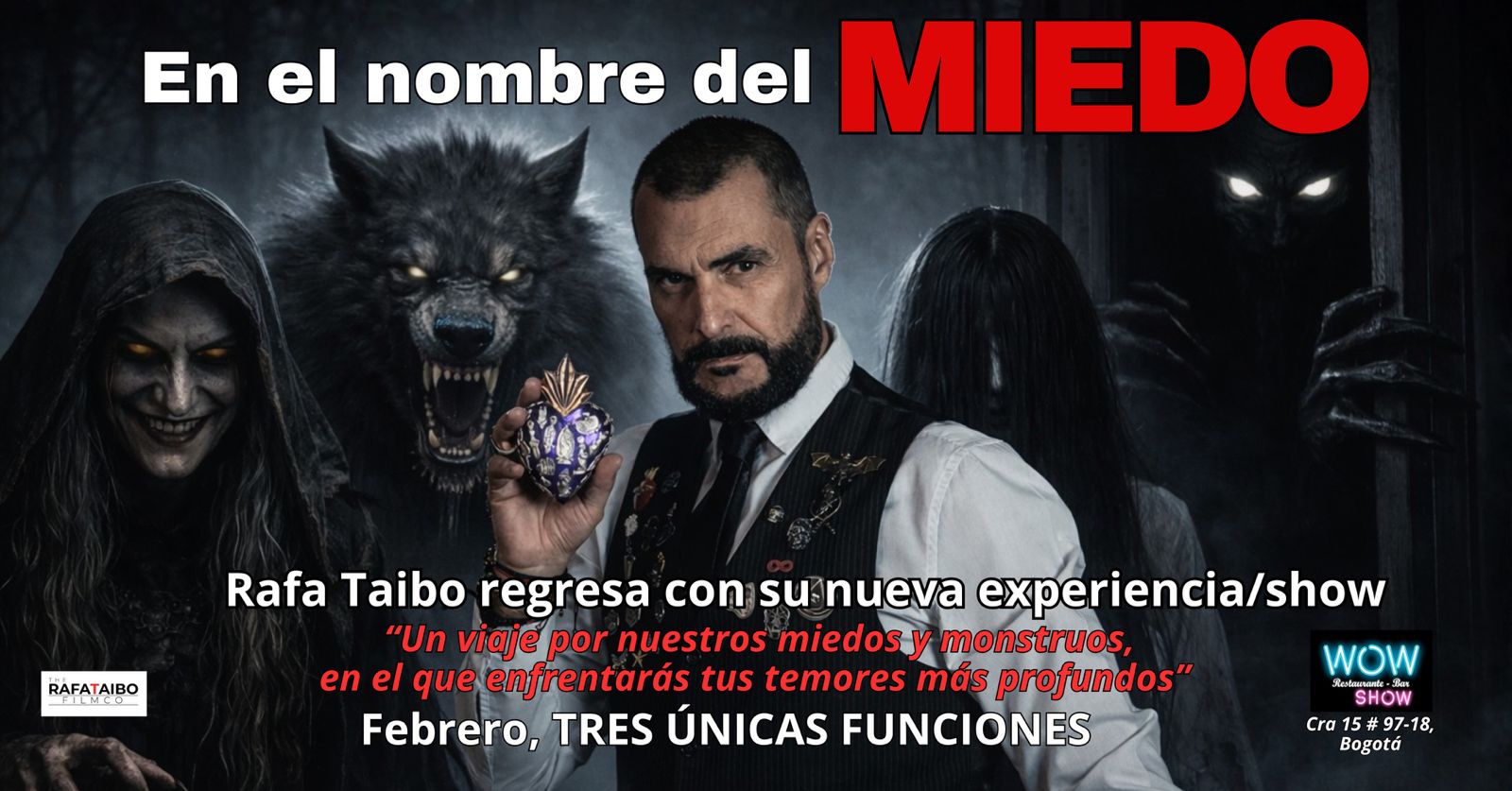 Una experiencia escénica única inmersiva que podrás vivir en el Bar WOW Restaurante en Bogotá Tres únicas funciones en febrero El reconocido director, actor, productor e investigador paranormal Rafa Taibo llega en febrero 2026 con una propuesta escénica única en su formato y en su intensidad emocional : En el nombre del miedo, no es […]