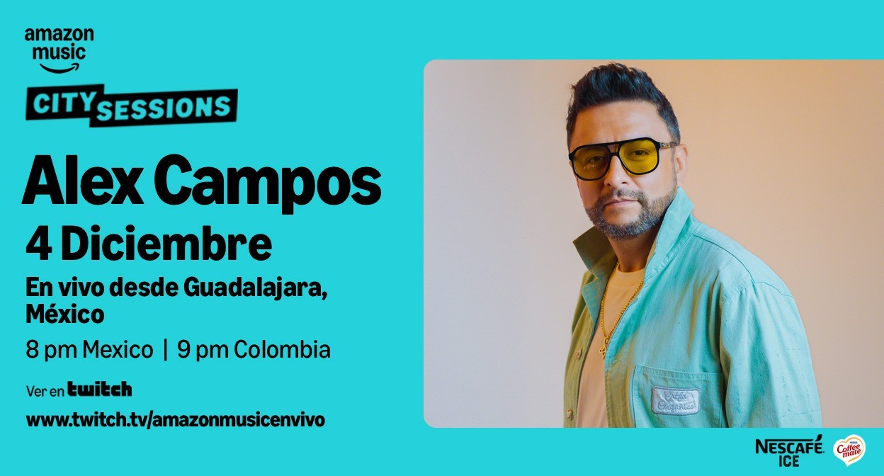 🎧 City Sessions, la serie global de conciertos de Amazon Music, concluye la temporada con un sesión especial de la mano de Alex Campos que será transmitida en vivo desde Guadalajara, México, el 4 de diciembre a las 9:00 p.m. hora Colombia.