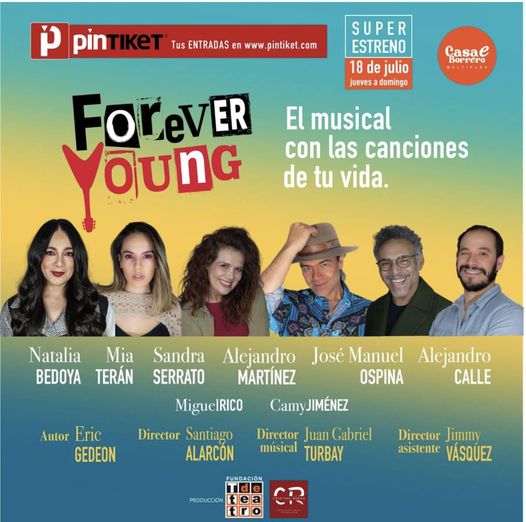 Bajo la Dirección Musical de Juan Gabriel Turbay, la Dirección General de Santiago Alarcón, Jimmy Vásquez como Director Invitado y la producción de T de Teatro y Cristina Rodas, Forever Young logró reunir para esta temporada de estreno en Colombia y en un mismo escenario, a un elenco de primera en el que se destaca todo el talento actoral y la fuerza interpretativa de Natalia Bedoya, Mia Terán, Sandra Serrato, Camy Jiménez, Alejandro Martínez, José Manuel Ospina, Alejandro Calle y Miguel Rico en el piano.