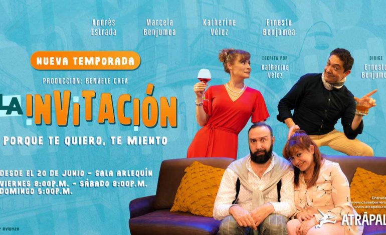 El Teatro Casa E Borrero se complace en anunciar la obra de teatro “La Invitación” en la Sala Arlequín. Esta comedia, la apuesta más ácida y divertida de la cartelera nacional, ofrece una experiencia teatral llena de risas y profundas reflexiones sobre la hipocresía y las apariencias. Esta puesta en escena reúne a un elenco de lujo: Ernesto Benjumea, Katherine Vélez, Marcela Benjumea y Andrés Estrada. Reconocidos por su destacada trayectoria en el teatro colombiano y tras exitosas temporadas individuales, estos cuatro artistas se unen en el escenario para encarnar a los personajes de La Invitación.
