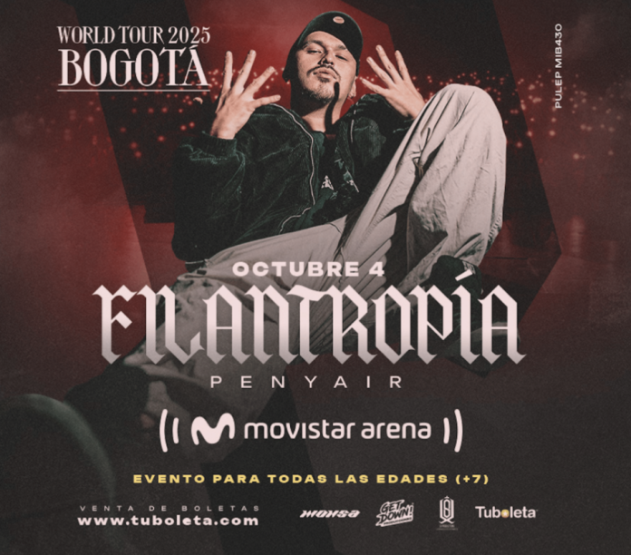 El influyente artista de hip hop colombiano Penyair anuncia su esperado concierto en el Movistar Arena de Bogotá el próximo 4 de octubre de 2025, como parte de su ambiciosa gira internacional “Filantropía World Tour”. Este concierto en su país natal, no solo marca un regreso triunfal a su país natal, sino también una celebración de su trayectoria y evolución artística, llevando el hip hop colombiano a uno de los escenarios más importantes de América Latina.